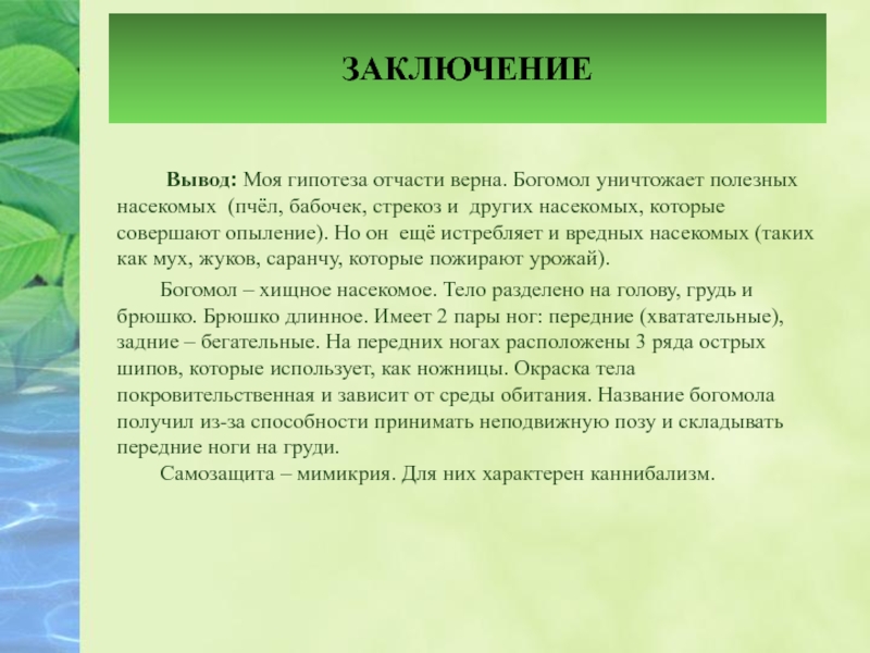 ПОЛЬЗА И ВРЕД БОГОМОЛА