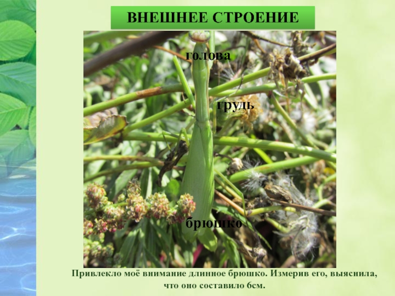 Привлекло моё внимание длинное брюшко. Измерив его, выяснила, что оно составило 6см.