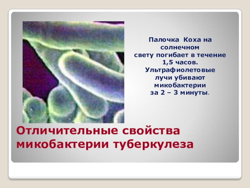 Слайд 8Отличительные свойства микобактерии туберкулеза