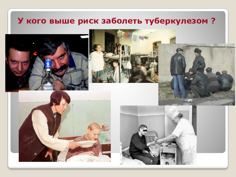 Слайд 14У кого выше риск заболеть туберкулезом ?