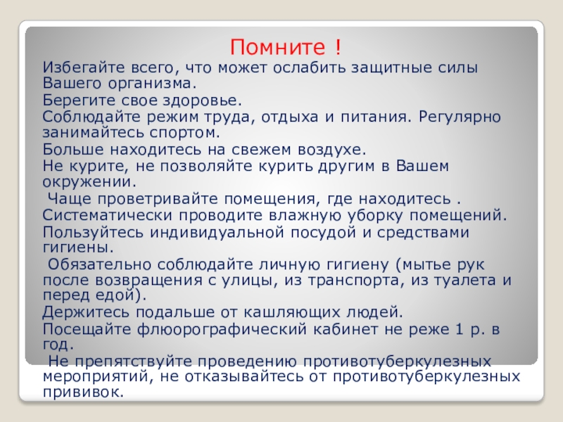 Посещайте флюорографический кабинет не реже 1 р. в год.