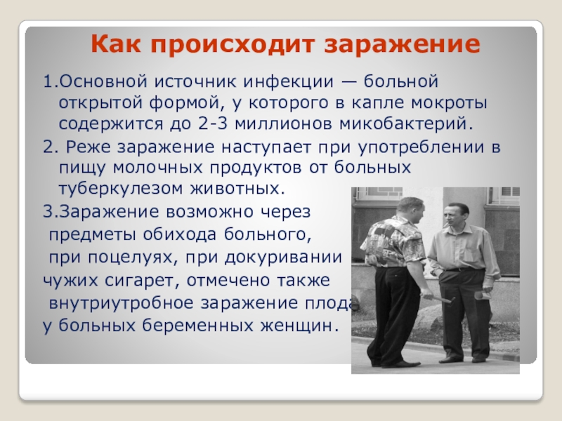 2. Реже заражение наступает при употреблении в пищу молочных продуктов от больных туберкулезом животных.