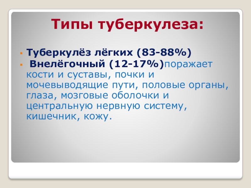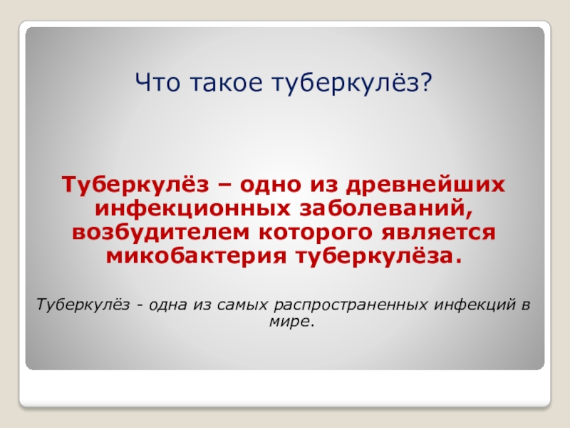 Туберкулёз – одно из древнейших инфекционных заболеваний, возбудителем которого
