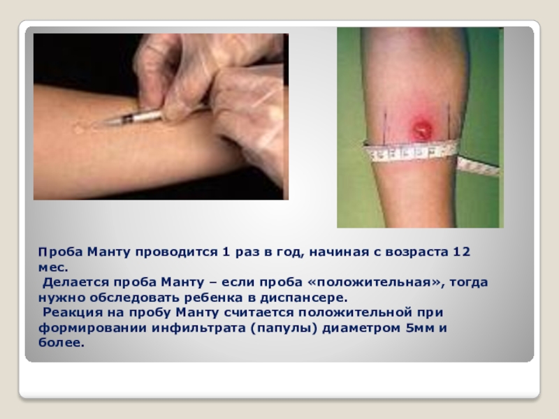 Проба Манту проводится 1 раз в год, начиная с возраста 12