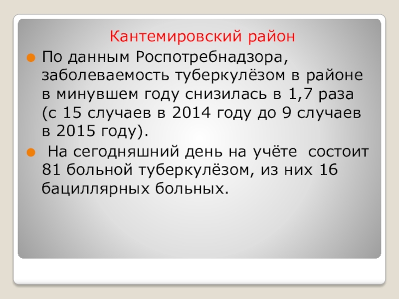 По данным Роспотребнадзора, заболеваемость туберкулёзом в районе в минувшем году