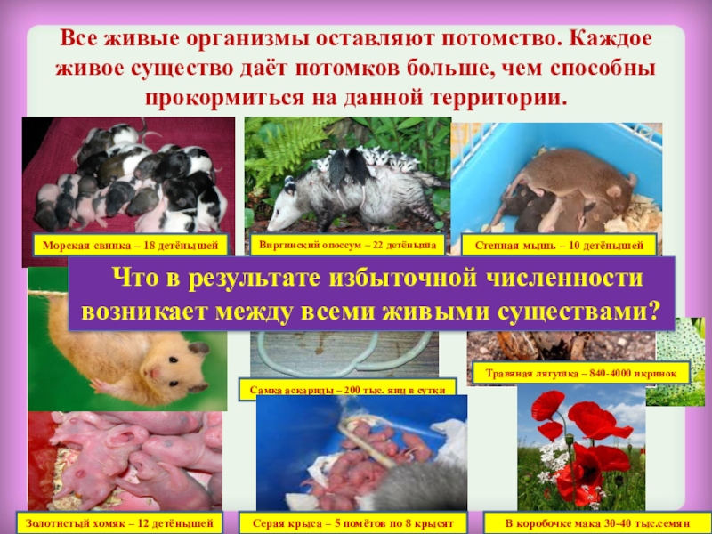 Что в результате избыточной численности возникает между всеми живыми существами?
