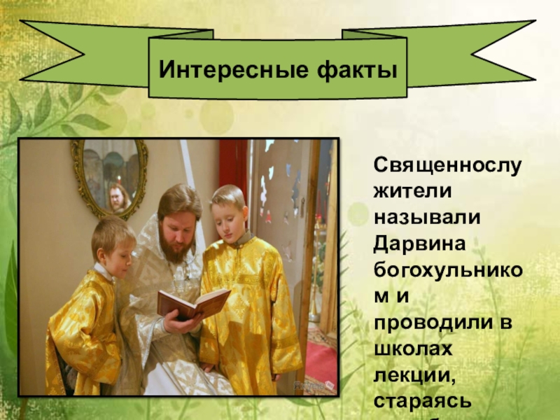 Интересные фактыСвященнослужители называли Дарвина богохульником и проводили в школах лекции, стараясь подобрать наиболее аргументированные обвинения в отношении
