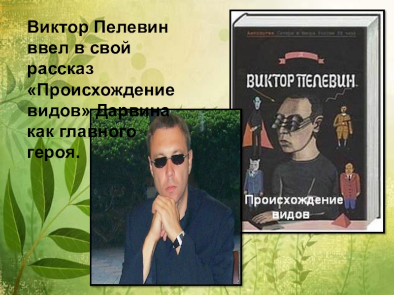 Слайд 26Виктор Пелевин ввел в свой рассказ «Происхождение видов» Дарвина как главного