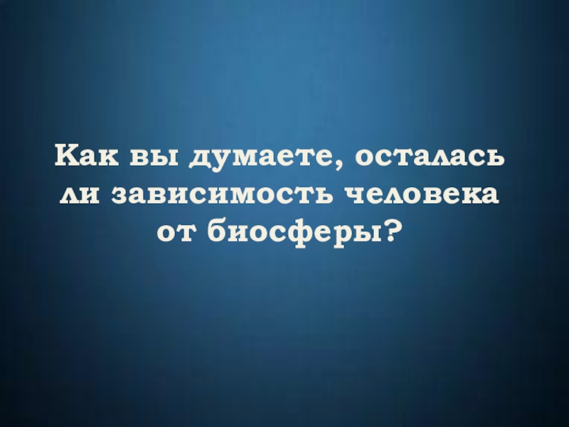 Слайд 4Как вы думаете, осталась ли зависимость человека от биосферы?