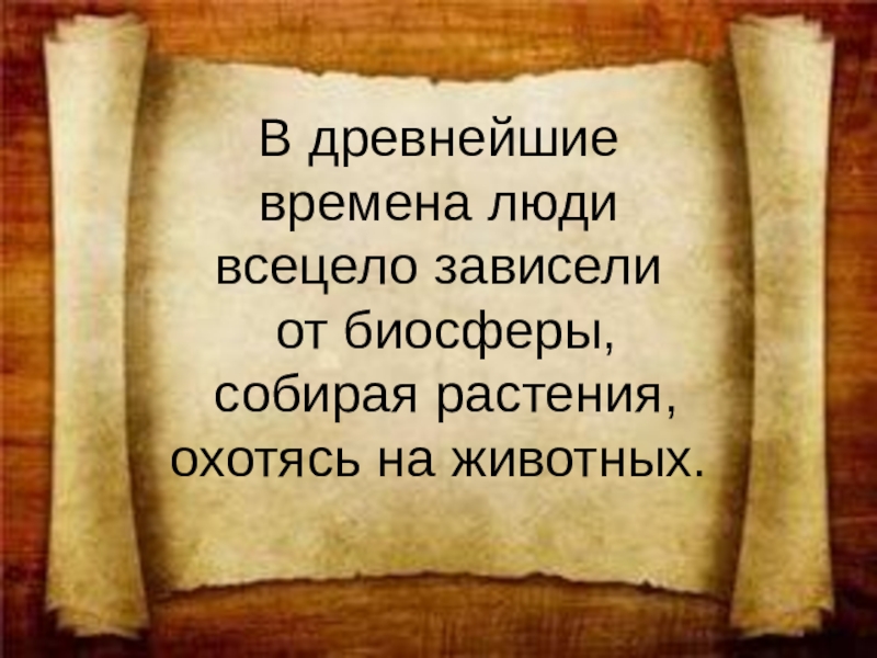 В древнейшие времена люди всецело зависели от биосферы, собирая растения, охотясь на животных.