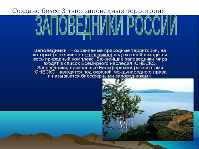 Слайд 14Создано более 3 тыс. заповедных территорий