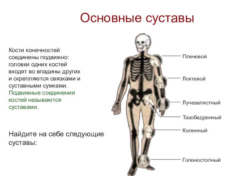 Слайд 29Найдите на себе следующие суставы:
