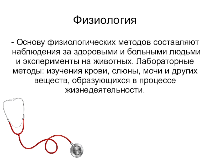 - Основу физиологических методов составляют наблюдения за здоровыми и больными