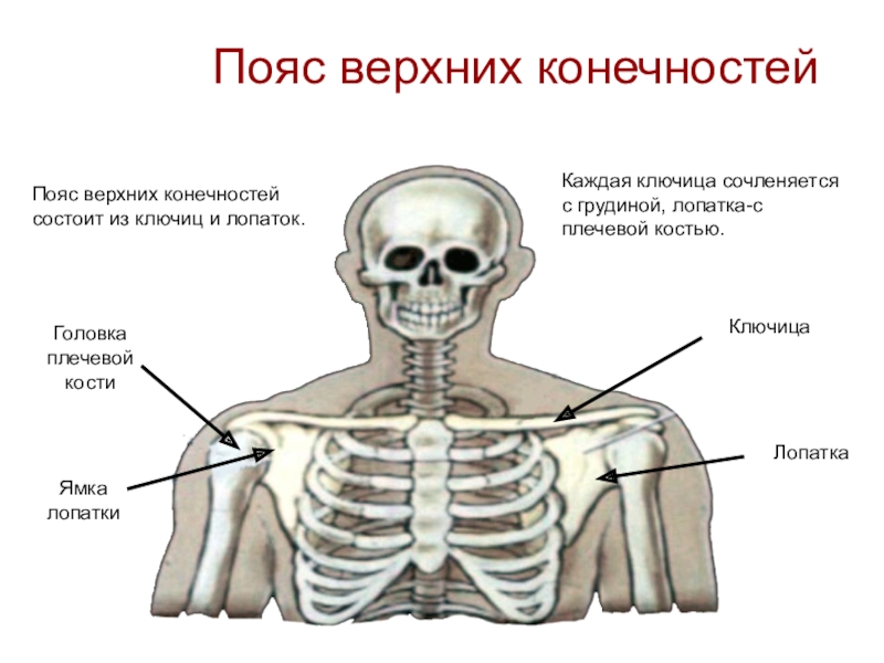 Пояс верхних конечностей состоит из ключиц и лопаток.