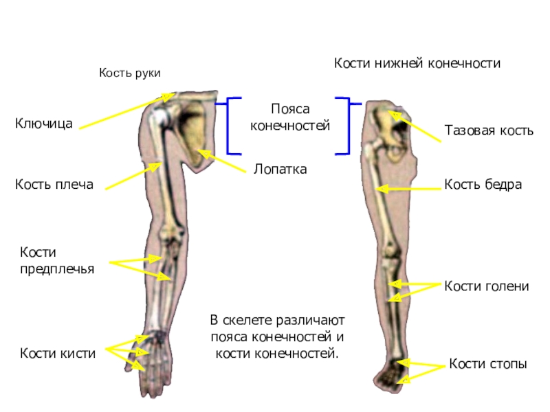 В скелете различают пояса конечностей и кости конечностей.