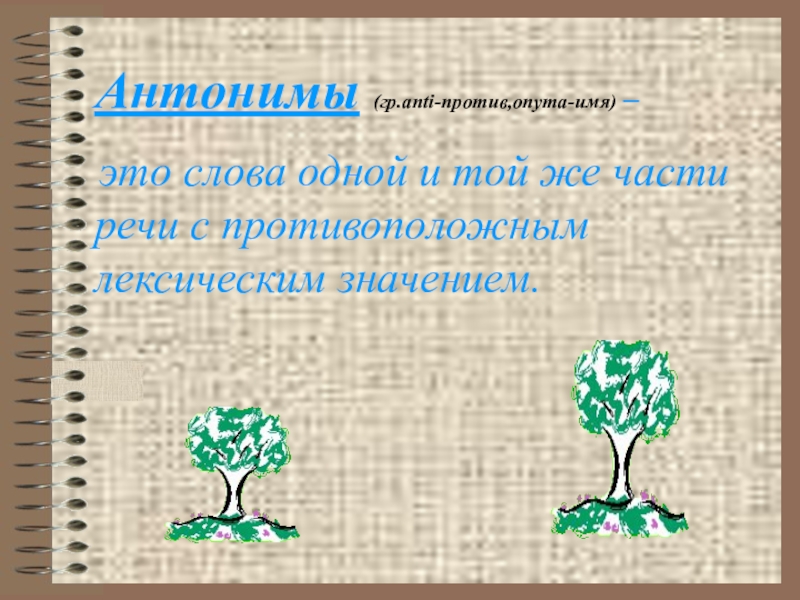 Слайд 5Антонимы (гр.anti-против,onyma-имя) –