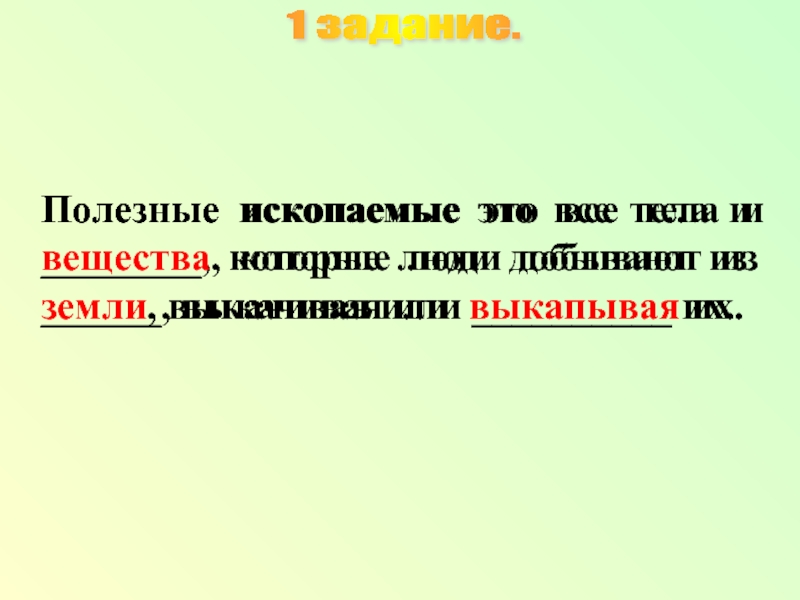Полезные ископаемые это все тела и вещества, которые люди добывают из земли, выкачивая или выкапывая их.
