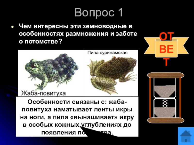 Особенности связаны с: жаба-повитуха наматывает ленты икры на ноги, а пипа «вынашивает» икру в особых кожных углублениях до появления потомства.