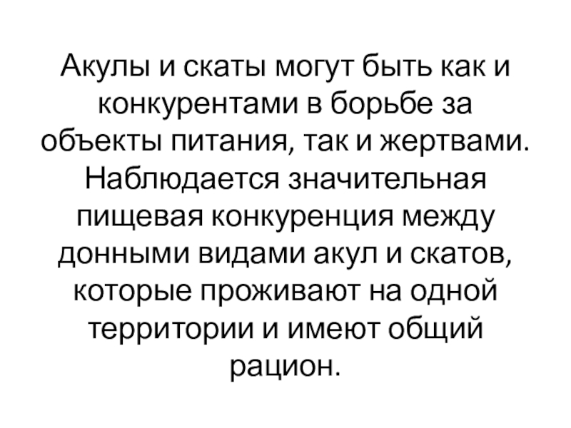 Слайд 14Акулы и скаты могут быть как и конкурентами в борьбе за
