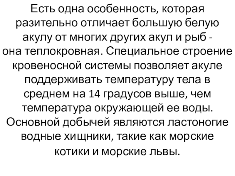 Слайд 20Есть одна особенность, которая разительно отличает большую белую акулу от многих