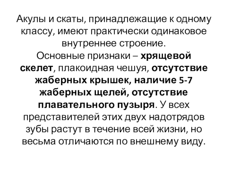 Слайд 5Акулы и скаты, принадлежащие к одному классу, имеют практически одинаковое внутреннее