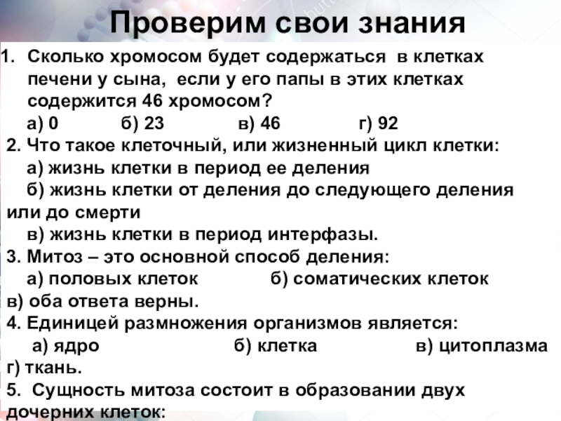 Митоз обеспечивает такие важные процессы жизнедеятельности как: