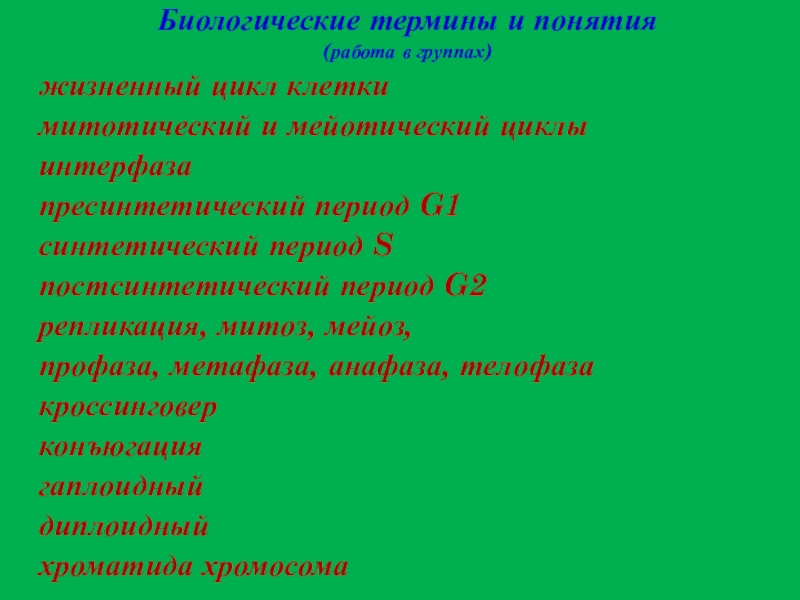 4. Какой набор хромосом получается при митотическом делении? А)гаплоидный, б)диплоидный, в)триплоидный.