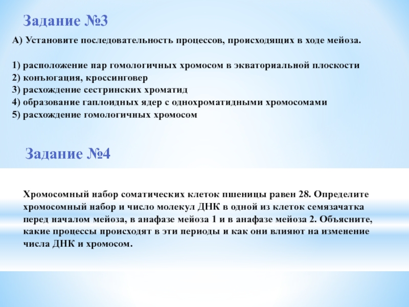Хромосомный набор соматических клеток пшеницы равен 28. Определите хромосомный набор и число молекул ДНК в одной из клеток семязачатка перед началом мейоза, в анафазе мейоза 1 и в анафазе мейоза 2. Объясните, какие процессы происходят в эти периоды и как они влияют на изменение числа ДНК и хромосом.