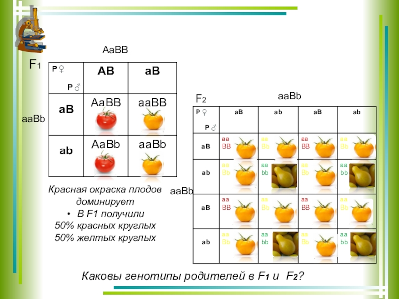 Каковы генотипы родителей в F1 и F2?