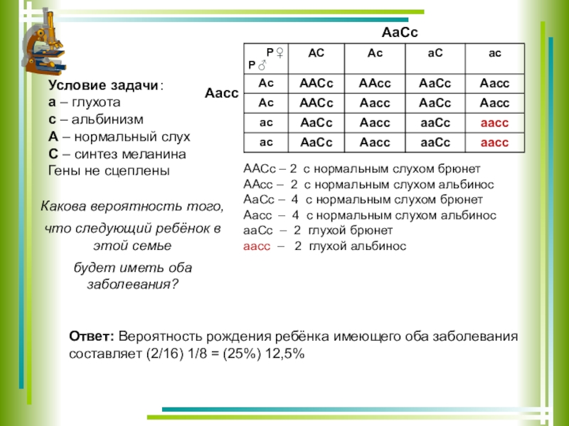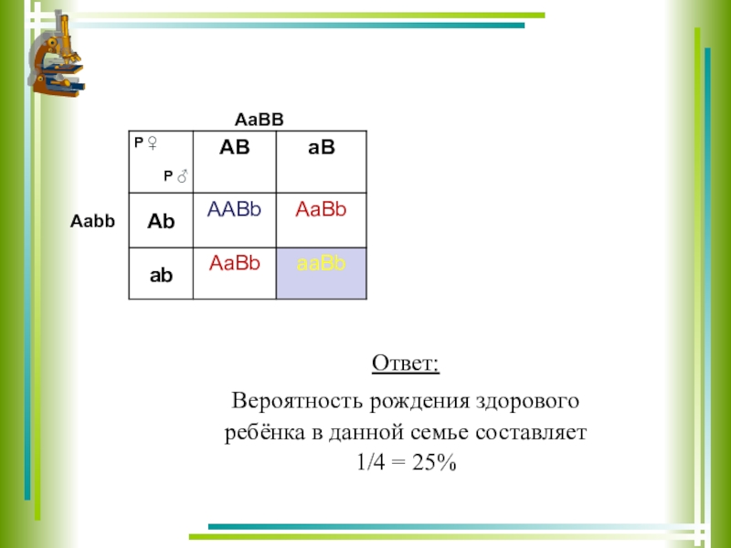 Ответ: Вероятность рождения ребёнка имеющего оба заболевания