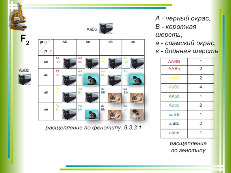 расщепление по фенотипу: 9:3:3:1