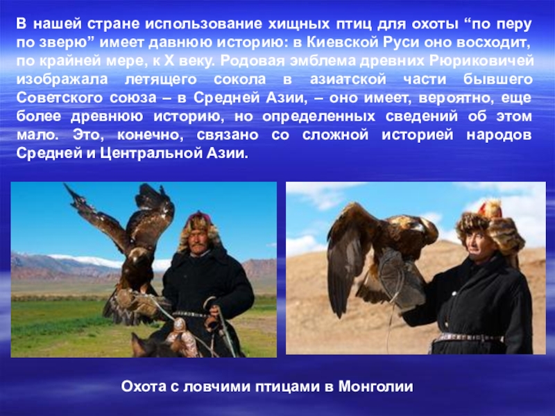 Слайд 6В нашей стране использование хищных птиц для охоты “по перу по