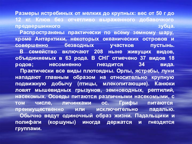 Слайд 8Размеры ястребиных от мелких до крупных: вес от 50 г до