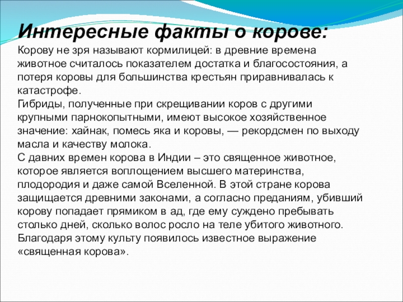 Слайд 3Предком домашних коров был дикий бык, в частности его вымерший в