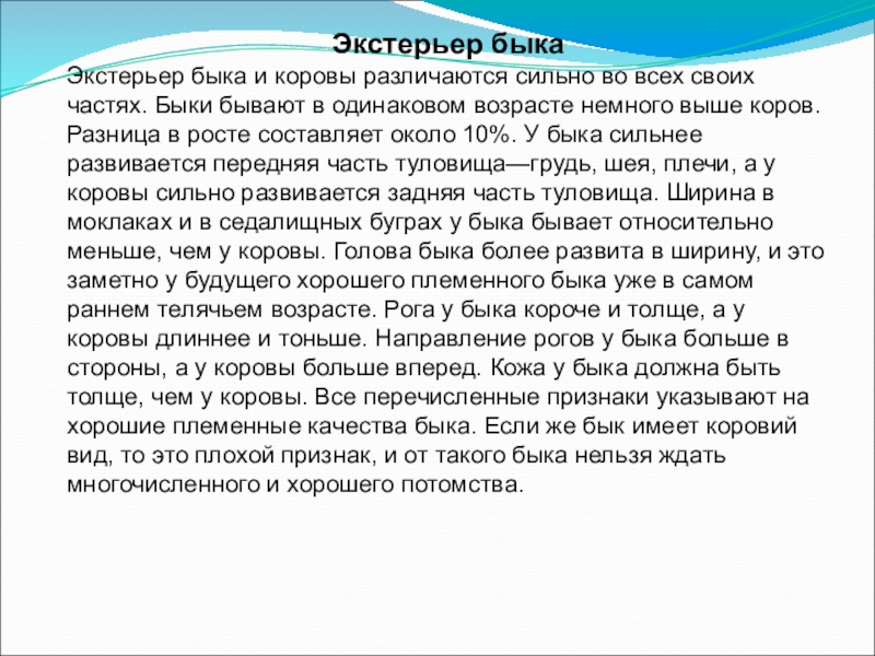 Экстерьер быка и коровы различаются сильно во всех своих частях.