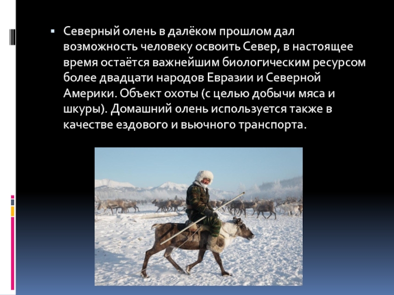 Слайд 8Северный олень в далёком прошлом дал возможность человеку освоить Север, в