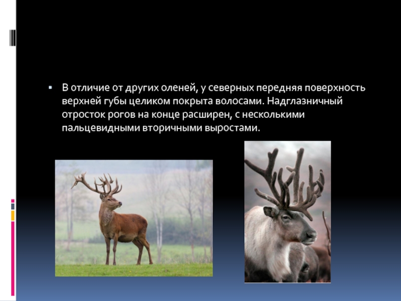 Слайд 3В отличие от других оленей, у северных передняя поверхность верхней губы