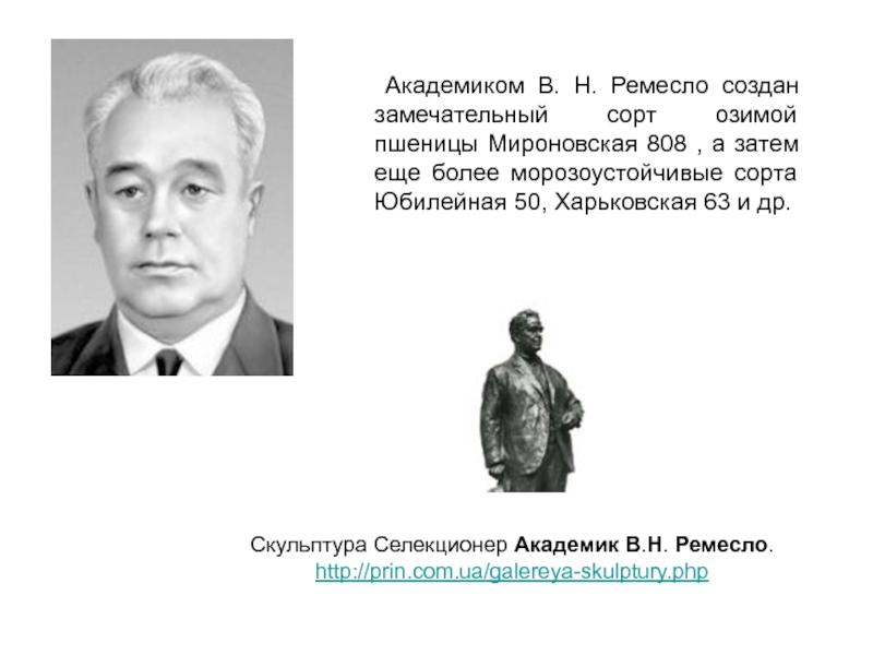 Скульптура Селекционер Академик В.Н. Ремесло.