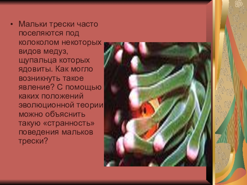 ядовиты. Как могло возникнуть такое явление? С помощью каких положений эволюционной теории можно объяснить такую «странность» поведения мальков трески?