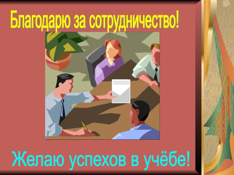 Желаю успехов в учёбе! Благодарю за сотрудничество!
