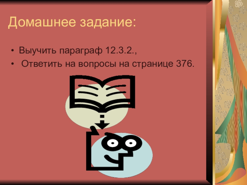 Домашнее задание:Выучить параграф 12.3.2., Ответить на вопросы на странице 376.
