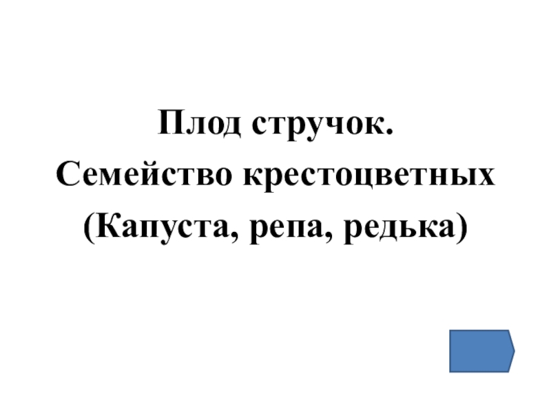 Плод стручок.Семейство крестоцветных(Капуста, репа, редька)