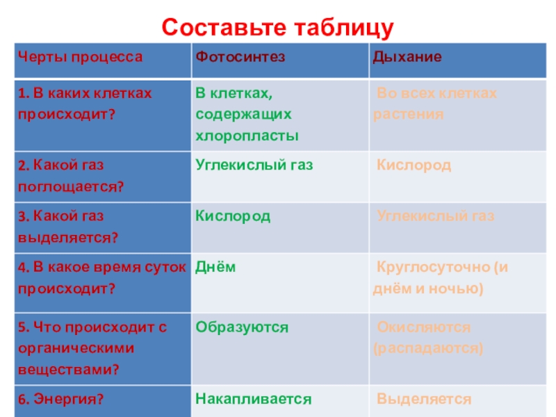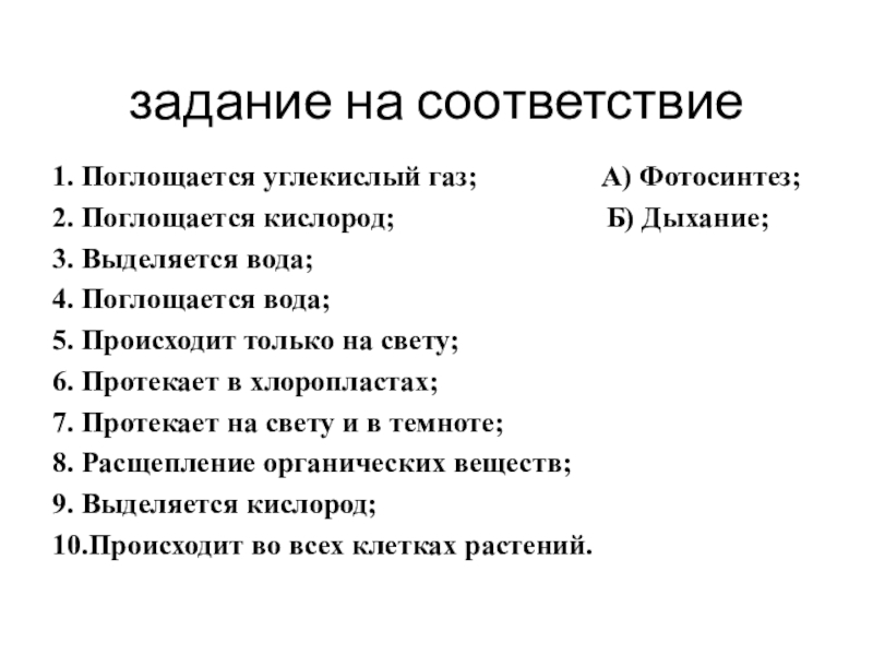задание на соответствие 1. Поглощается углекислый газ;         А)