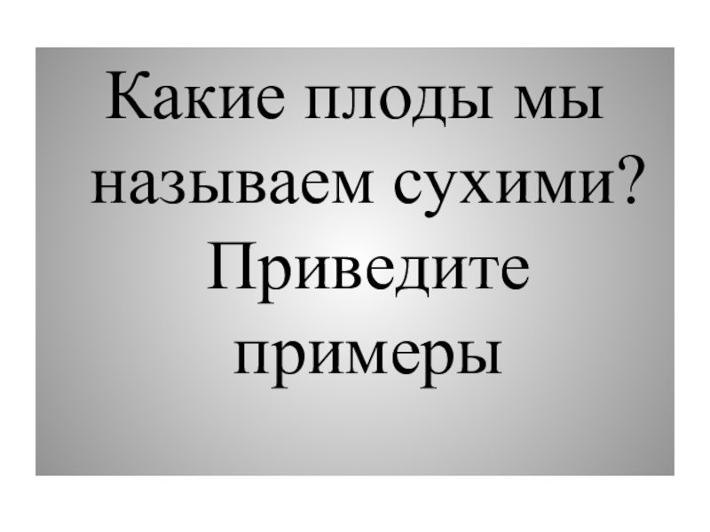 Слайд 15Какие плоды мы называем сухими? Приведите примеры