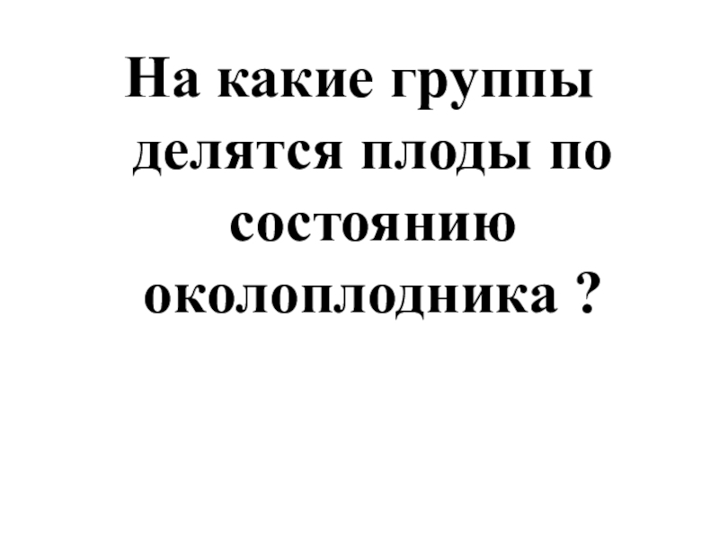 Слайд 5На какие группы делятся плоды по состоянию околоплодника ?