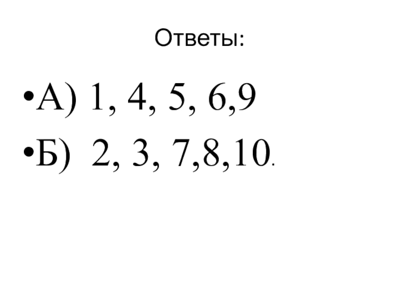 Ответы:А) 1, 4, 5, 6,9Б) 2, 3, 7,8,10.