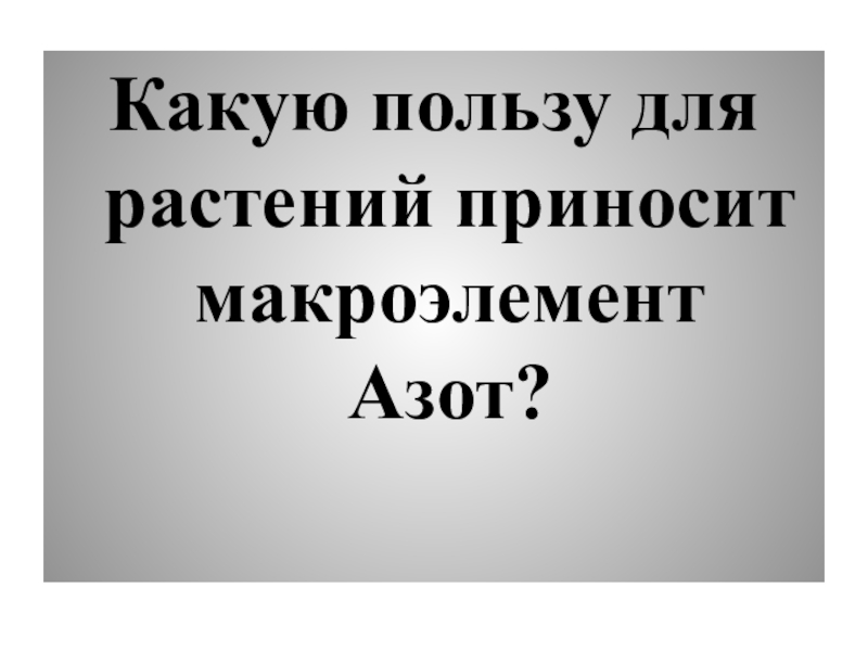 Слайд 17Какую пользу для растений приносит макроэлемент Азот?
