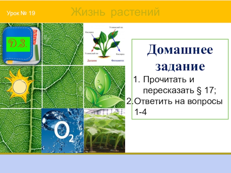 Домашнее заданиеПрочитать и пересказать § 17;Ответить на вопросы 1-4 Урок № 19