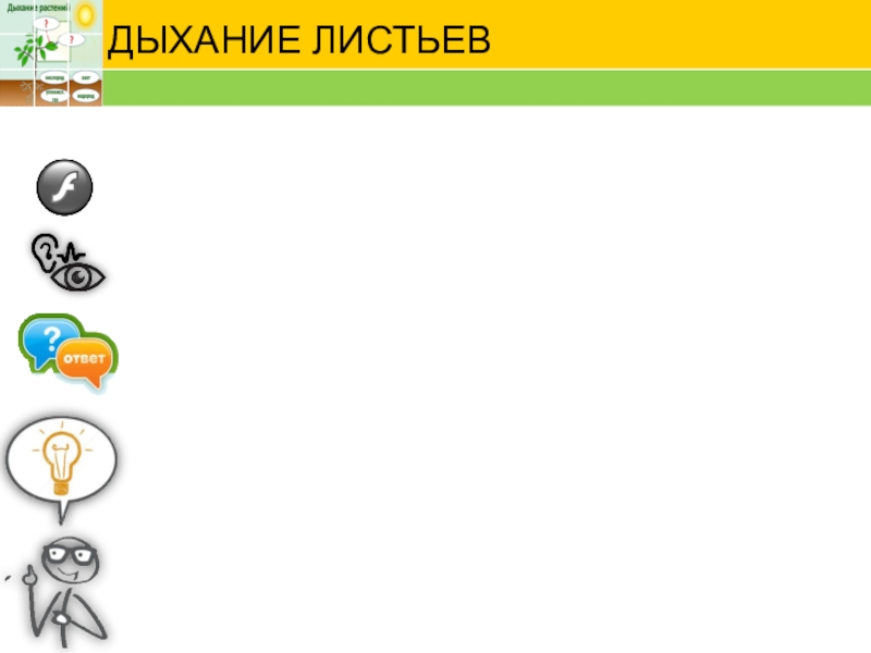 Слайд 8ДЫХАНИЕ ЛИСТЬЕВ