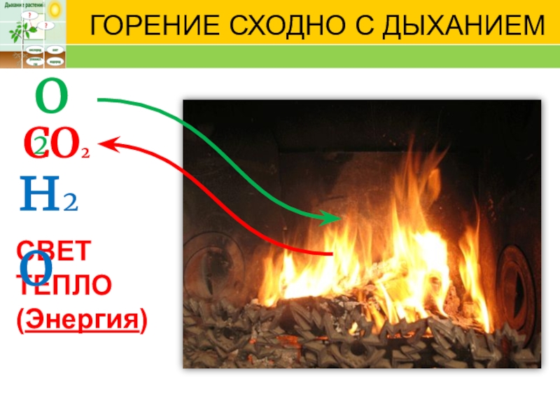 ГОРЕНИЕ СХОДНО С ДЫХАНИЕМСВЕТ ТЕПЛО(Энергия)о2СО2н2о